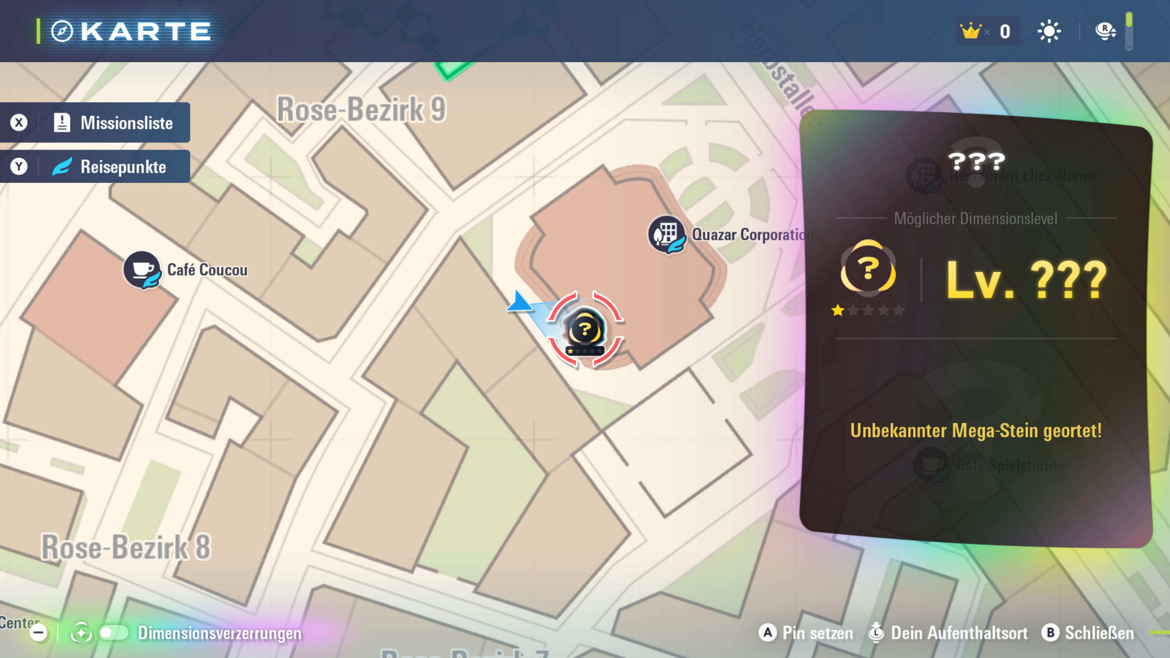 • Um die besondere Dimensionsverzerrung zu entdecken, die es dir ermöglicht, Mega-Knakrack Z zu begegnen, musst du dich in den herunterladbaren Inhalten von Pokémon-Legenden: Z-A – Mega-Dimension mindestens ein Mal auf ein Abenteuer in einer Dimensionsverzerrung begeben haben.