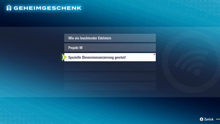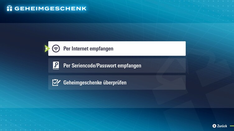1. Nimm dein Geheimgeschenk an: Wähle in der Geheimgeschenk-Funktion im Spiel „Per Internet empfangen“ gefolgt von „Spezielle Dimensionsverzerrung geortet!“ aus, um dieses Geschenk zu erhalten.