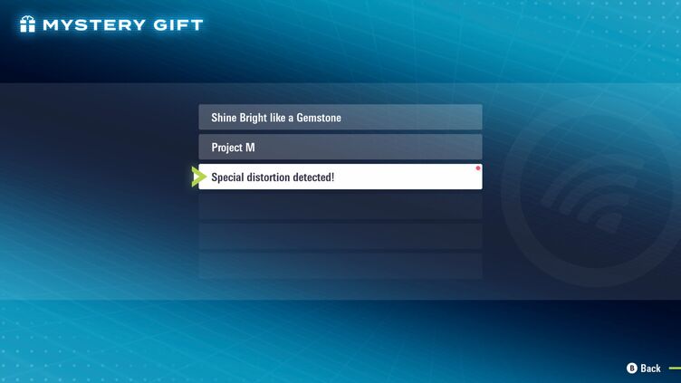 1. Claim your Mystery Gift: You can receive this gift by selecting Get via Internet from the Mystery Gift menu in your game, then selecting Special distortion detected!