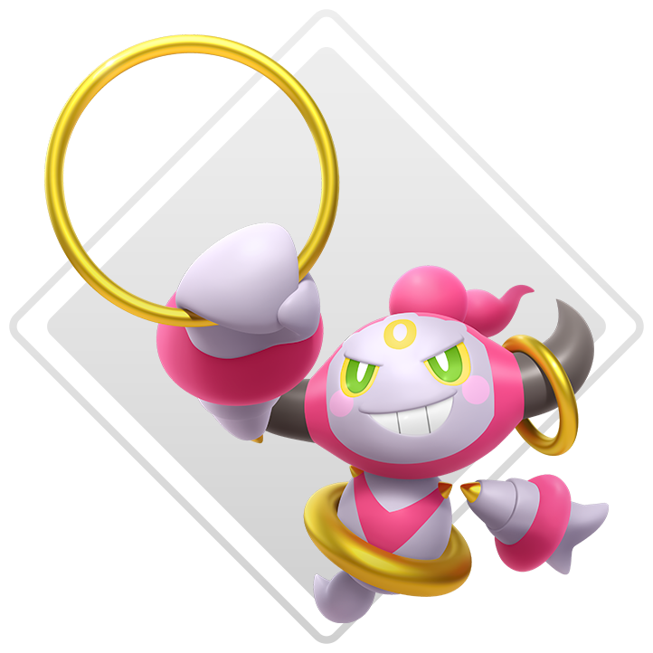 The Mythical Pokémon Hoopa Holds the KeyHoopa is a Mythical Pokémon that can warp space using the loops on its horns and around its body. These loops are stretchable and can form holes leading to far-off places. Whatever passes through one of Hoopa’s portals may be transported instantaneously. Hoopa is fond of foods that have holes in them—especially donuts. |